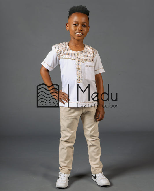Kiddies Pule Front Panel Shirt in Beige and Orange
