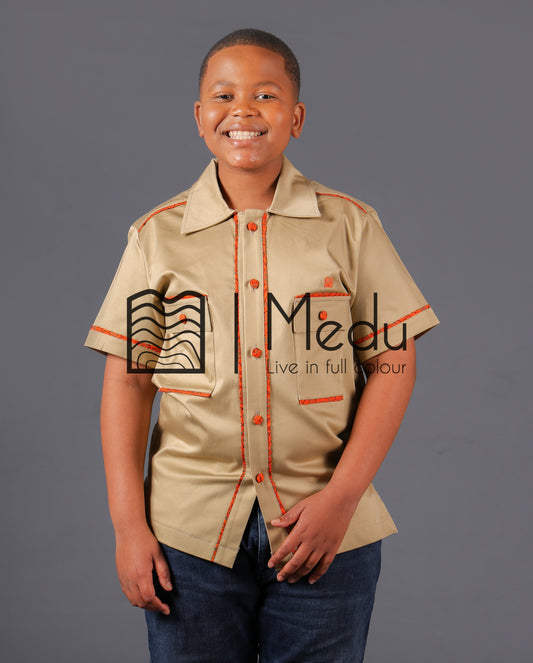 Kiddies Kwena Safari Shirt in Beige with Orange