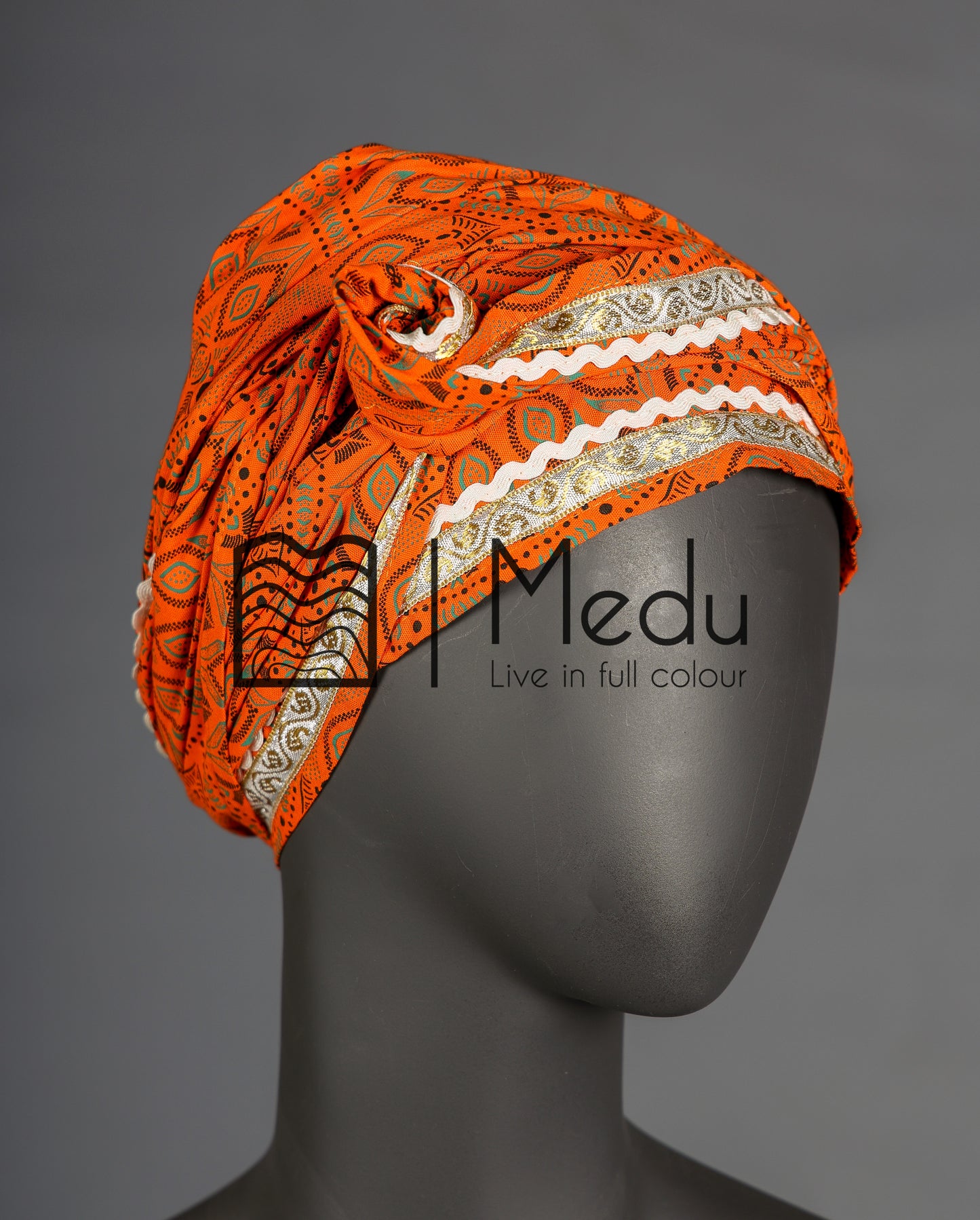 KIDDIES HEADWRAP ORANGE AND BEIGE