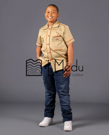 KIDDIES KWENA SAFARI SHIRT IN BEIGE WITH ORANGE