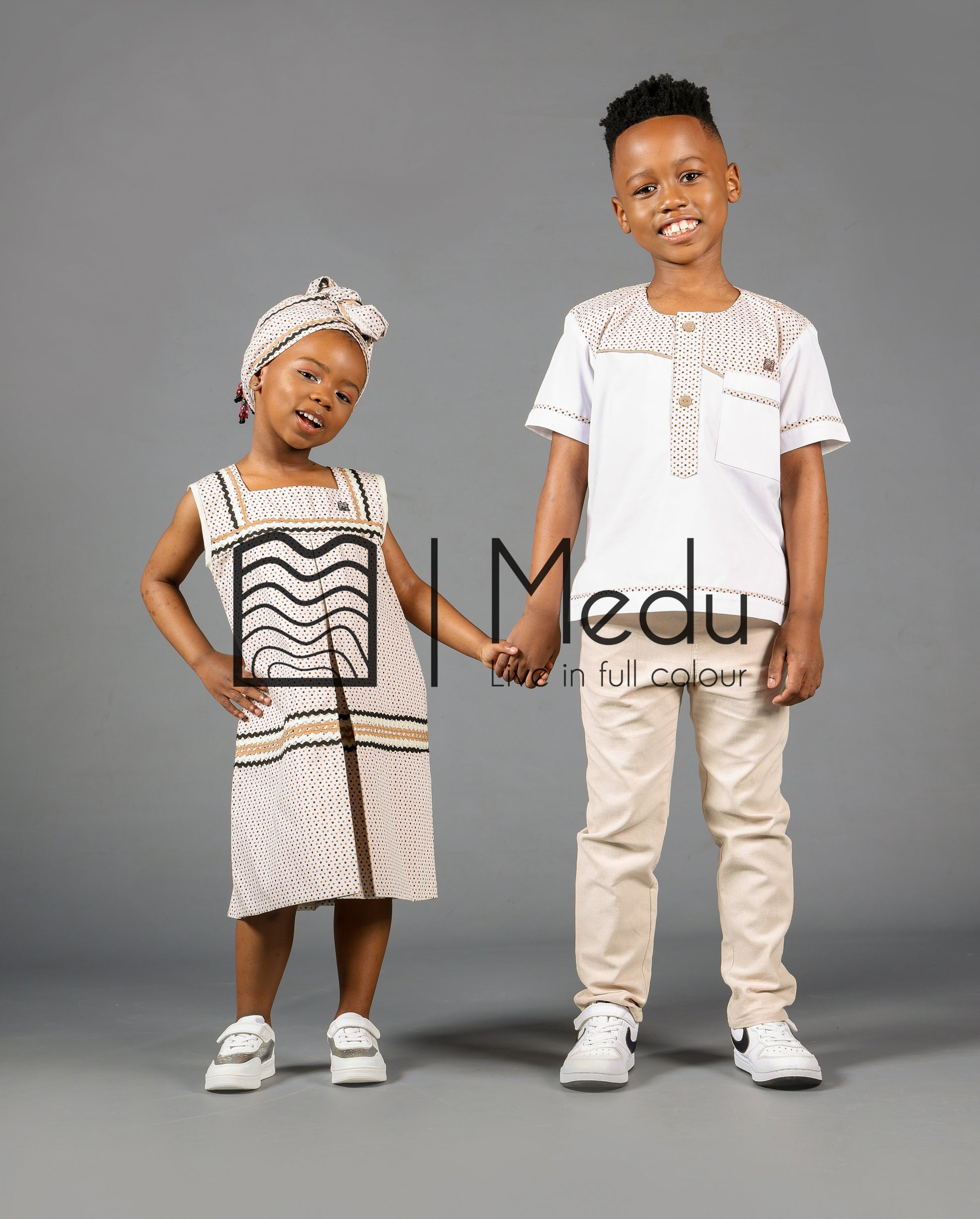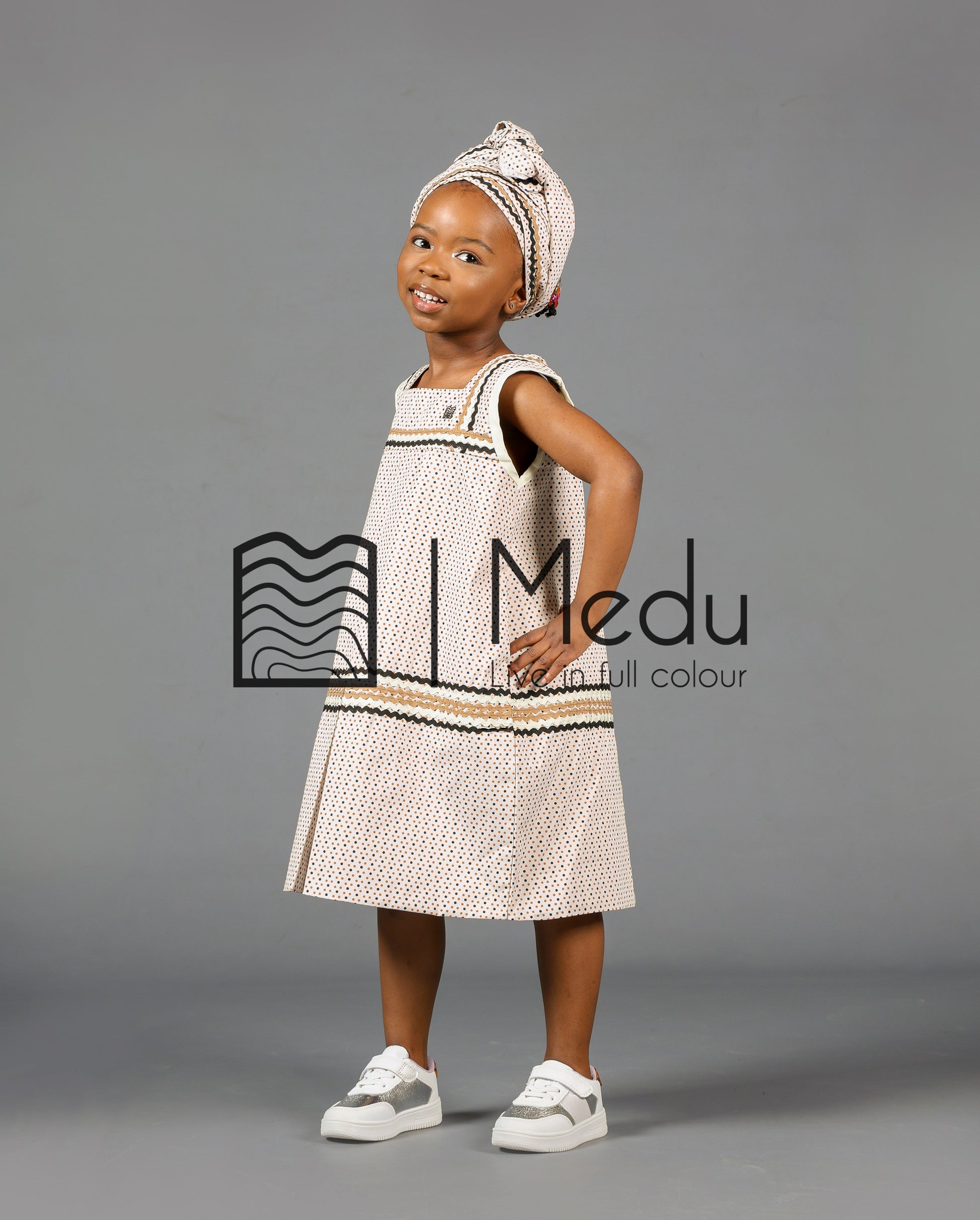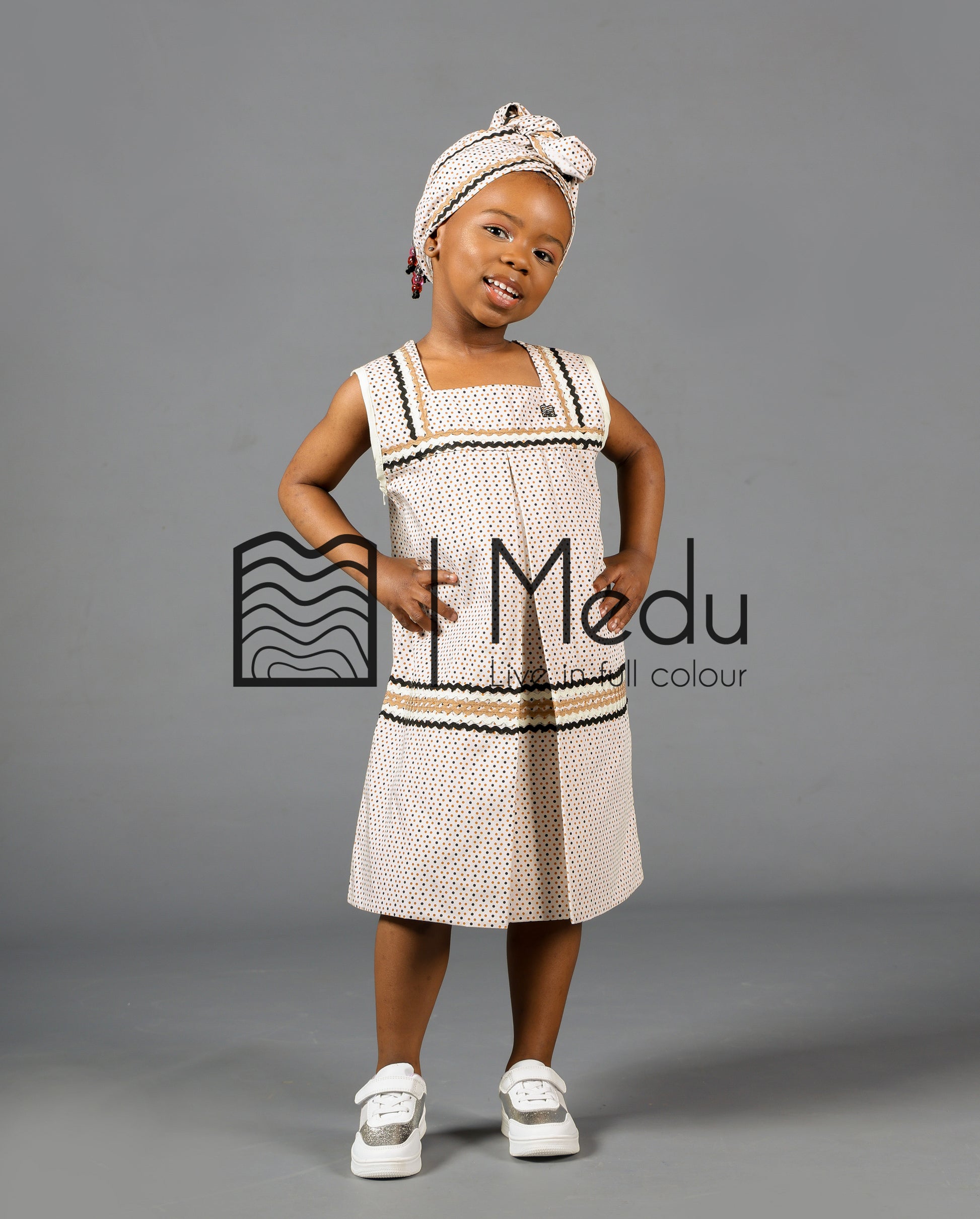 Maru, meaning "clouds" in Sepedi, represents the whimsical magical elegance of these beautiful dresses. Adorned with puffed sleeves and giant bows at the back, Maru dresses are perfect for any special occasion. With these beautiful Maru dresses, every day is a special occasion. At Medu, we are thrilled to introduce our girl's dress collection, where tradition meets contemporary style. Our little girls' dresses are a celebration of culture, love, and the joy of childhood. Let your little ones play, move, and look ultra-stylish in Medu's vibrant and beautiful dresses.