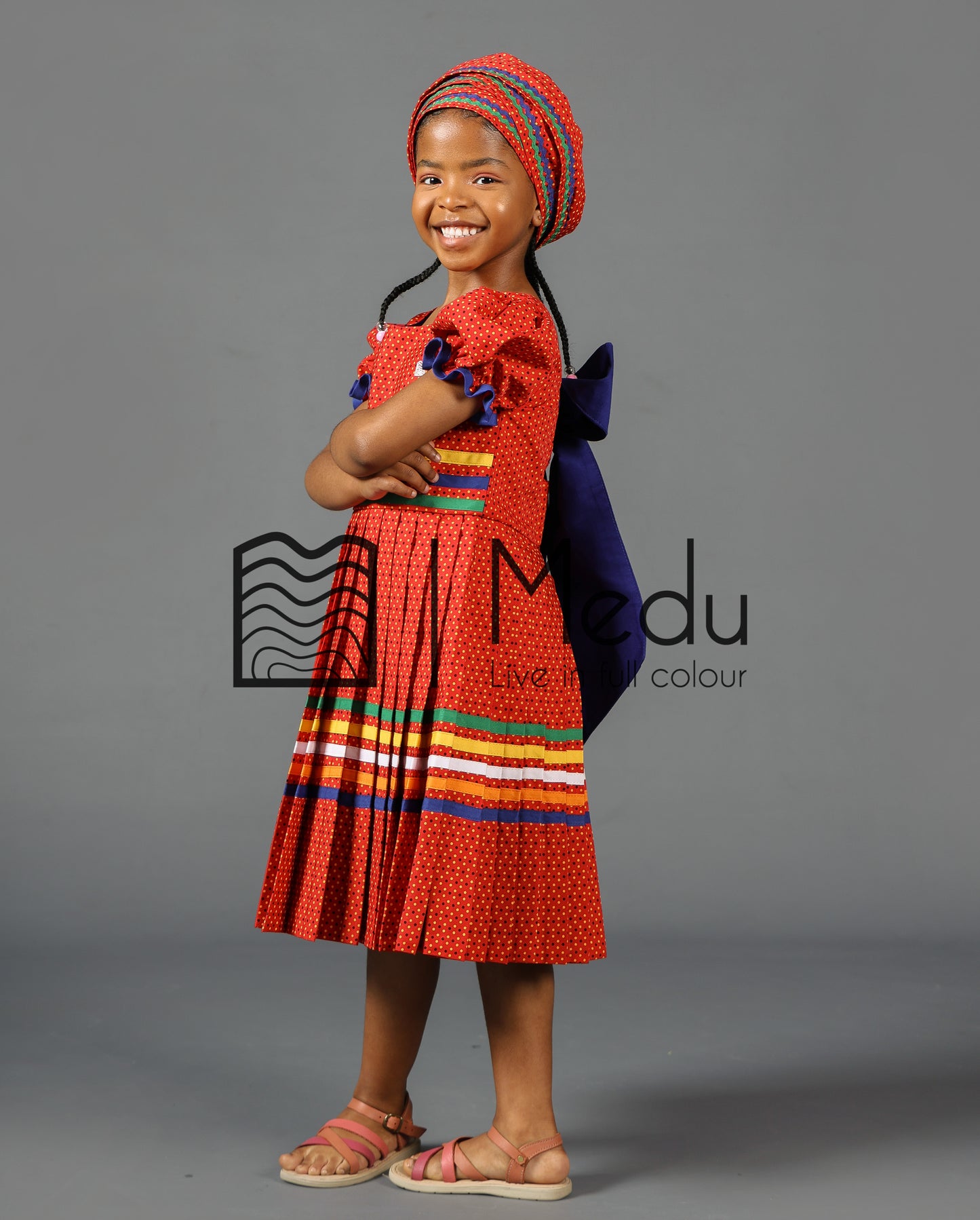 Maru, meaning "clouds" in Sepedi, represents the whimsical magical elegance of these beautiful dresses. Adorned with puffed sleeves and giant bows at the back, Maru dresses are perfect for any special occasion. With these beautiful Maru dresses, every day is a special occasion. At Medu, we are thrilled to introduce our girl's dress collection, where tradition meets contemporary style. Our little girls' dresses are a celebration of culture, love, and the joy of childhood. Let your little ones play, move, and look ultra-stylish in Medu's vibrant and beautiful dresses.