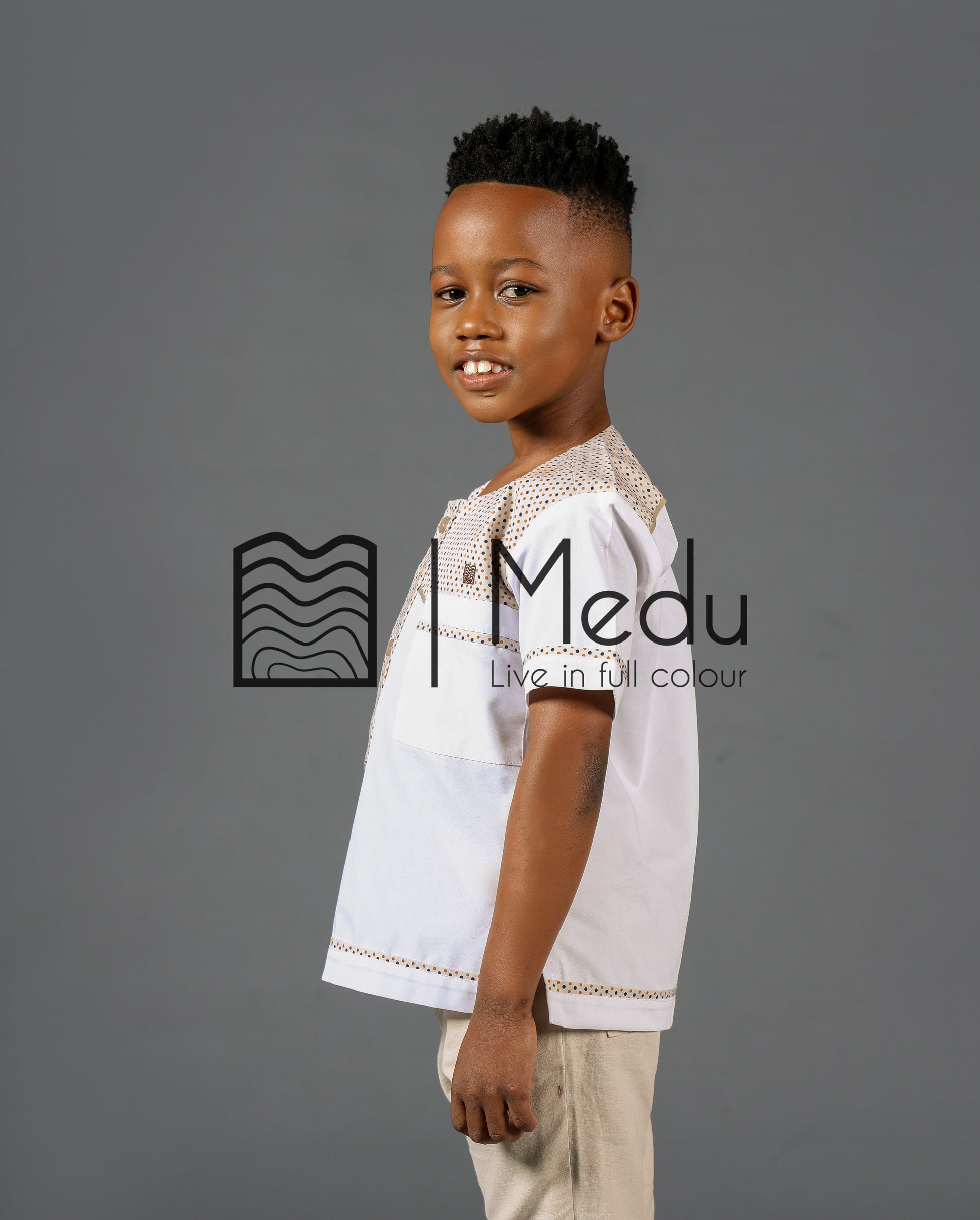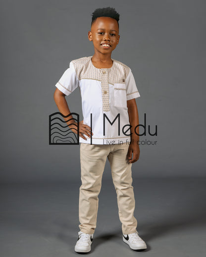 Introducing Pule – shirts that add a touch of elegance to all special moments. Pule, which means "in the rain" in Sepedi, is perfect for creating cherished memories. These shirts are adorned with thoughtful details for superb style and comfort. Elevate every moment with Pule, ensuring your child exudes confidence and looks effortlessly stylish on any occasion.