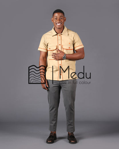 KWENA SAFARI SHIRT IN BEIGE AND ORANGE