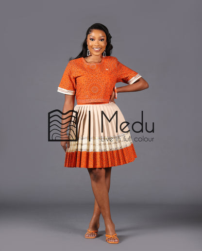 Introducing our newest ensemble – the Makgabo Box Crop Top and Pleated Skirt Set, a fusion of style and sophistication to showcase a trendy yet timeless sepedi design. The box crop top offers a chic silhouette, perfectly complemented by a gracefully pleated skirt. Together, they create a stunning ensemble that effortlessly elevates your style.