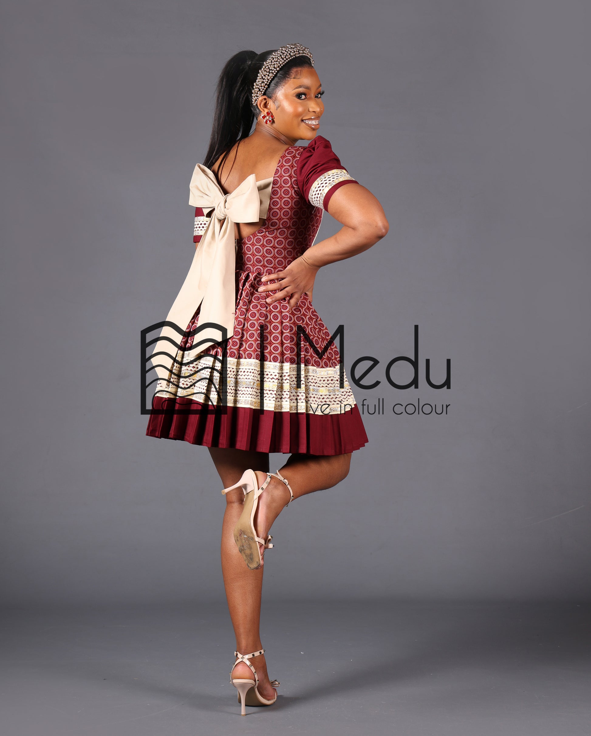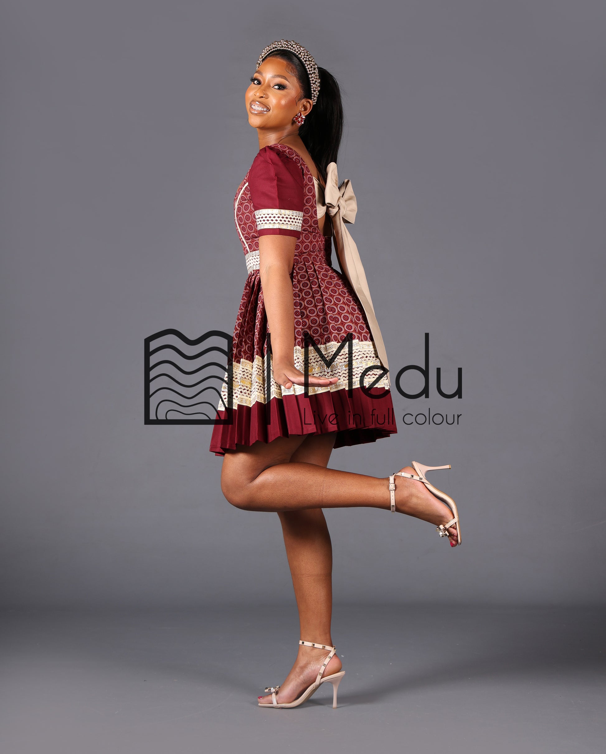 MMASHELA GIANT BOW MINI DRESS IN MAROON