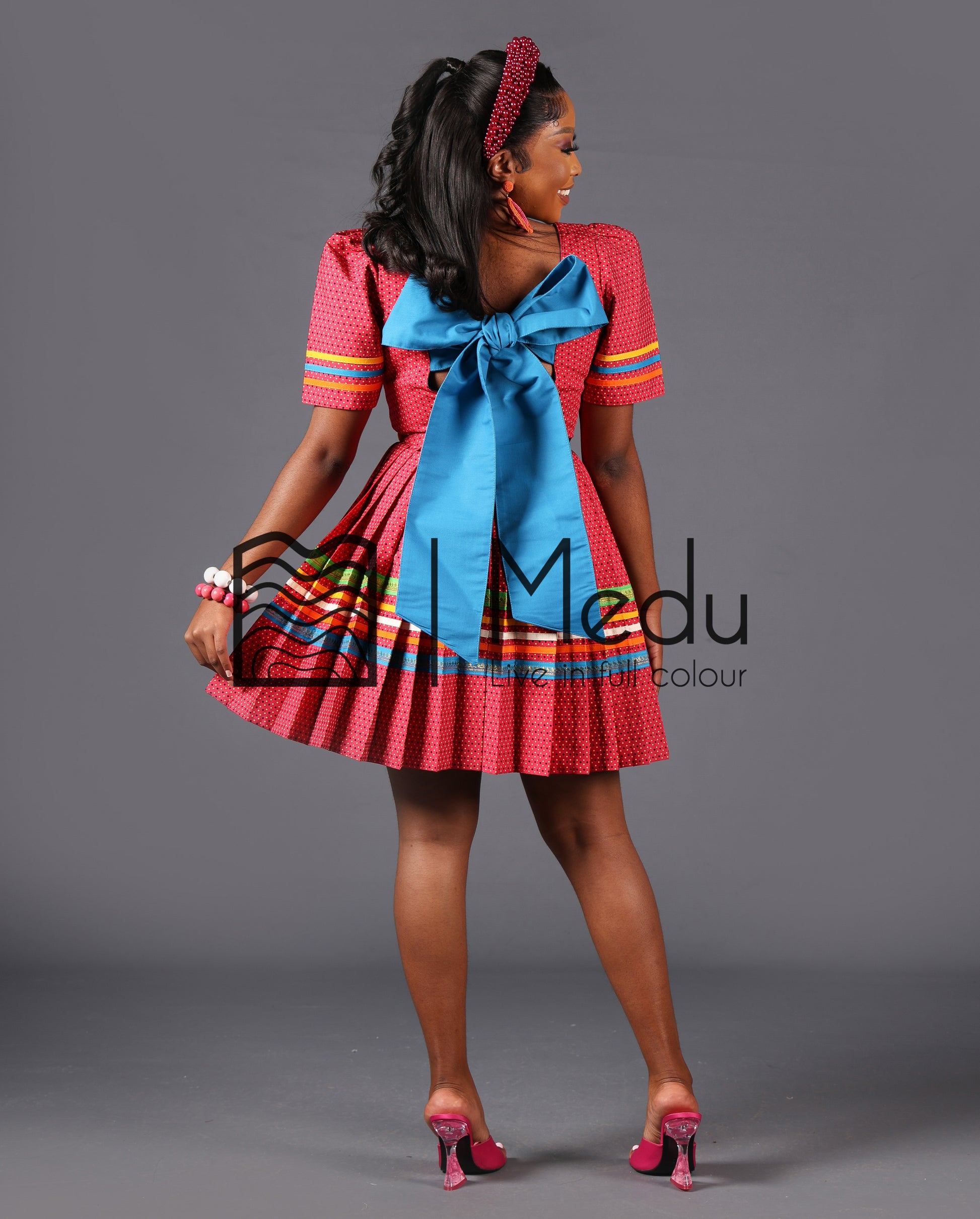 MMASHELA GIANT BOW MINI DRESS IN PINK