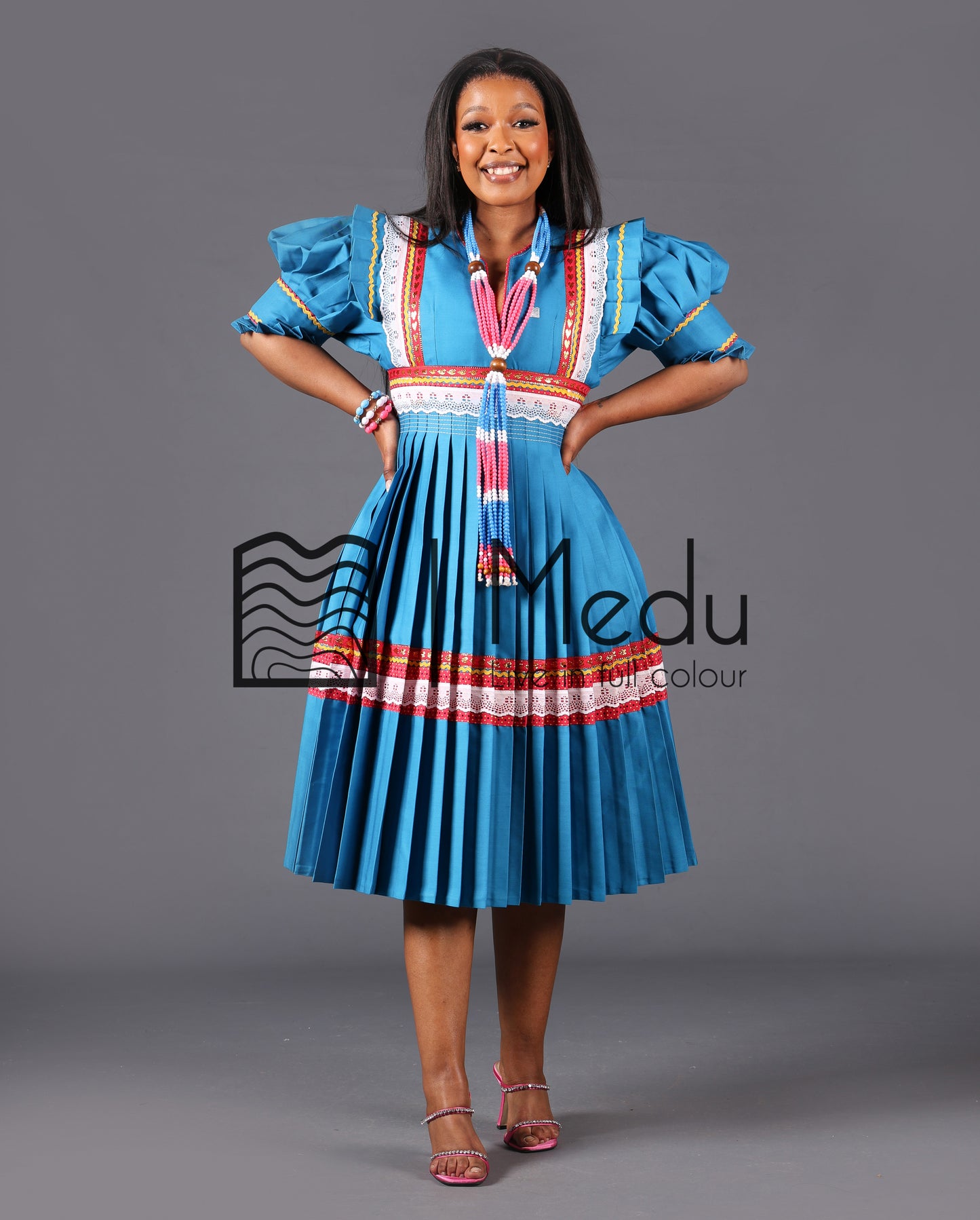 MOGOSHADI PLEATED BRIDAL DRESS IN PINK AND TURQUOISE
