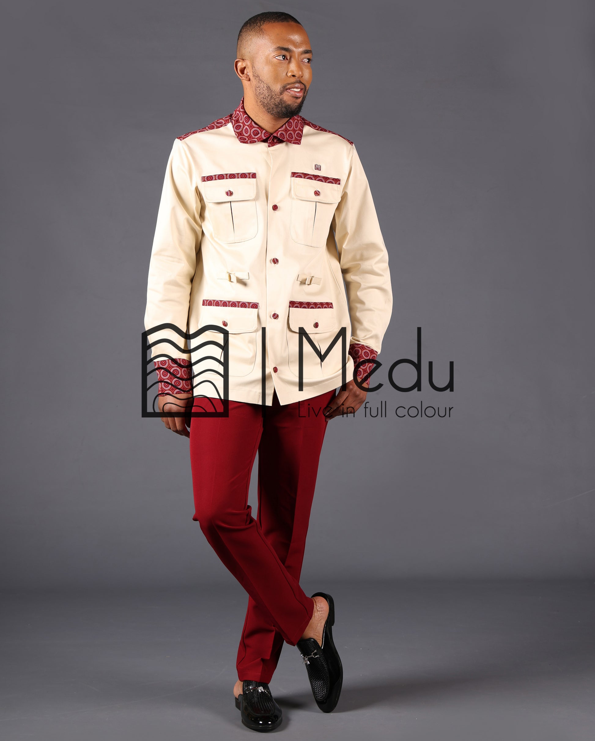 KWENA LUXE SAFARI SHIRT TRIMMED WITH MAROON