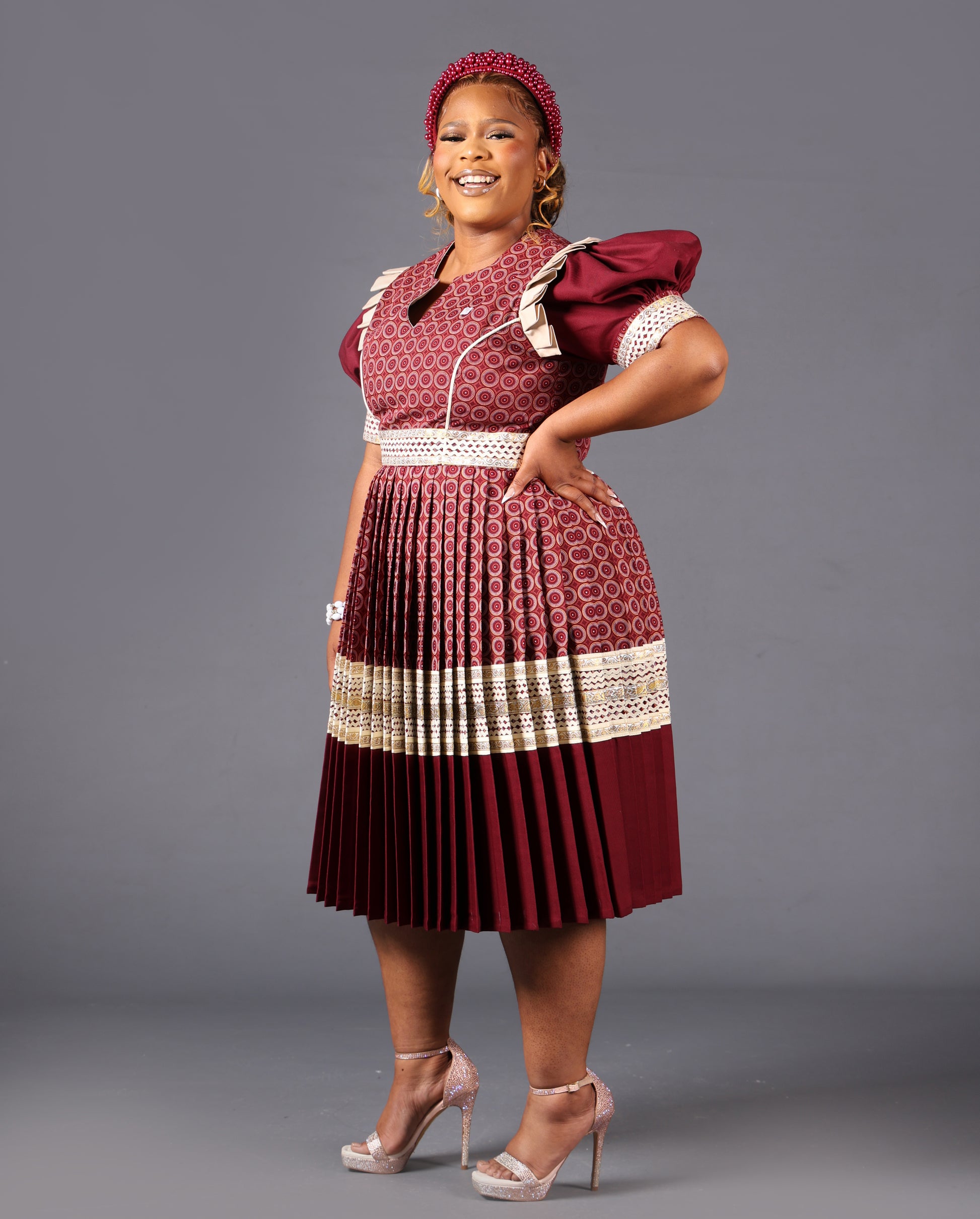 NTSOAKI BRIDAL SET BRIDAL SET IN MAROON AND BEIGE