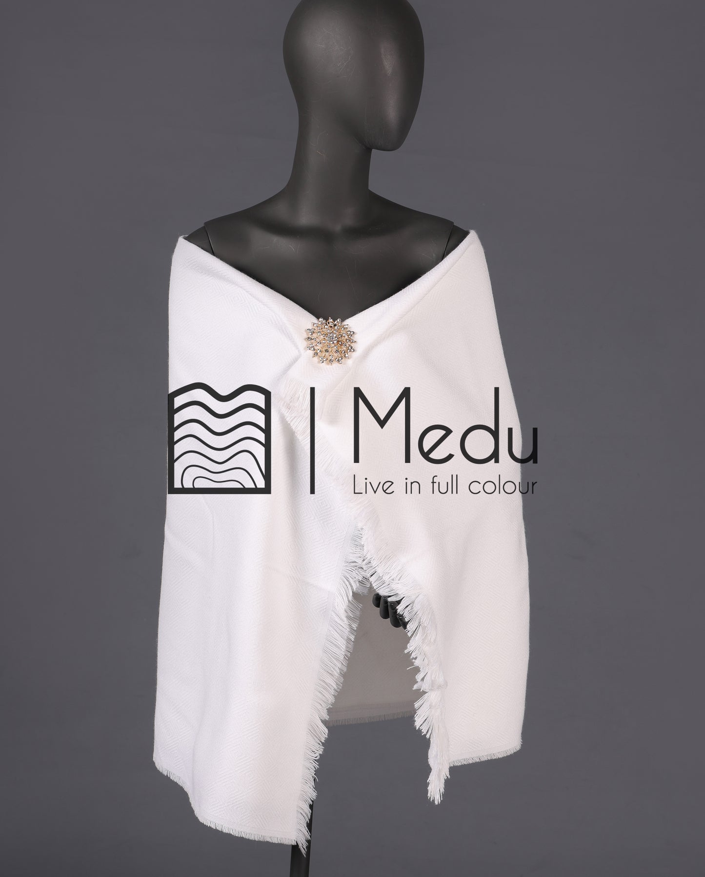Our Bridal White Shawl is the perfect addition to complete any wedding ensemble. Made from luxurious, soft knitting, this shawl exudes elegance and sophistication, providing the perfect finishing touch to your bridal look.